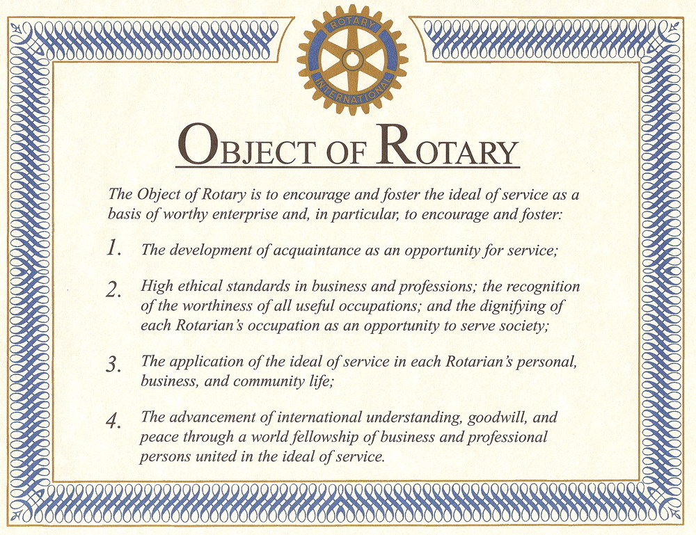 The Object of Rotary is to encourage and foster the ideal of service as a basis of worthy enterprise and, in particular, to encourage and foster: